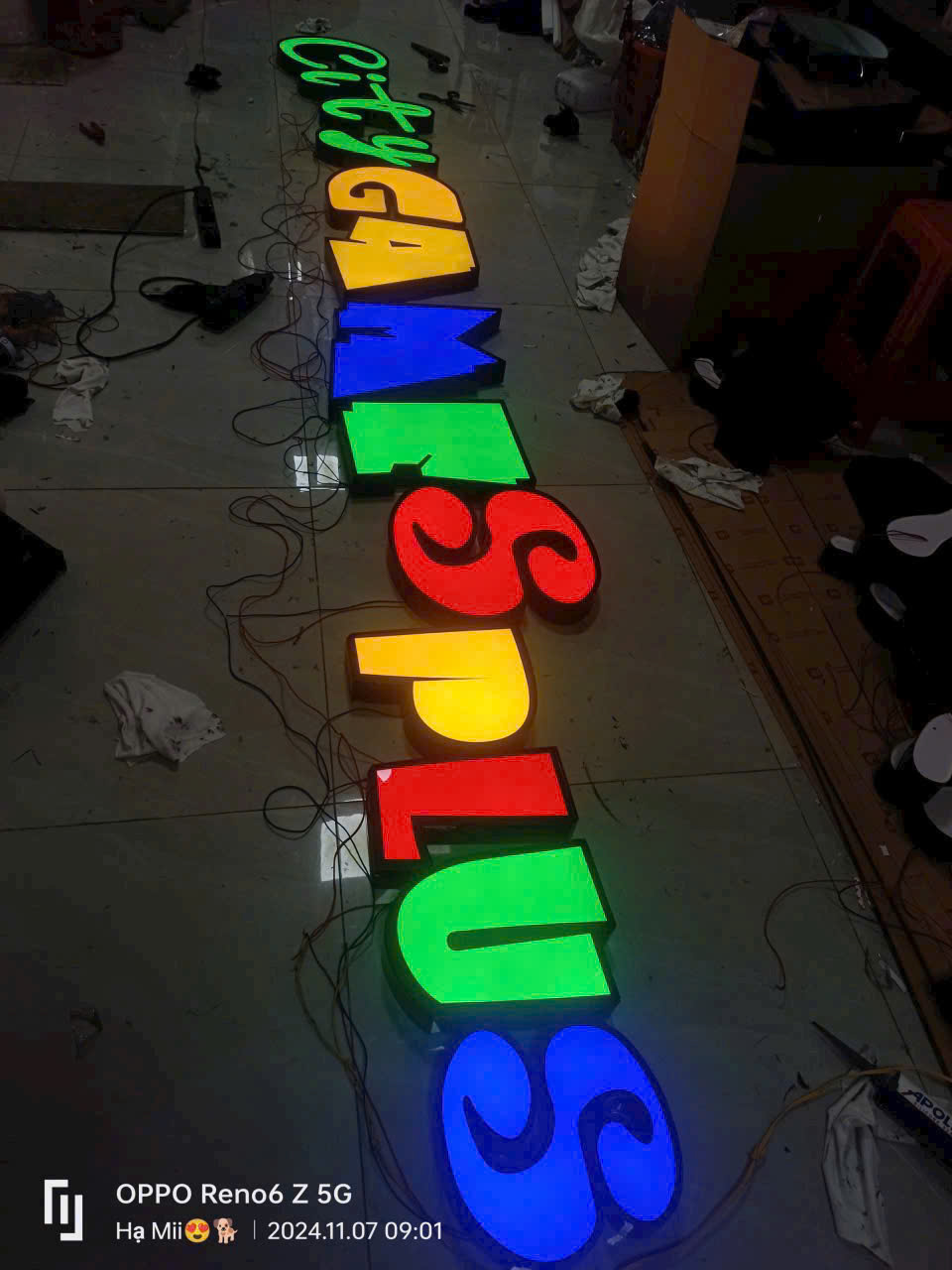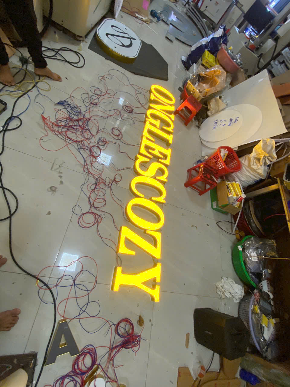 Chữ mica có đèn LED | Bên trong lắp đèn LED, có thể sáng âm, sáng hắt chân hoặc sáng viền |